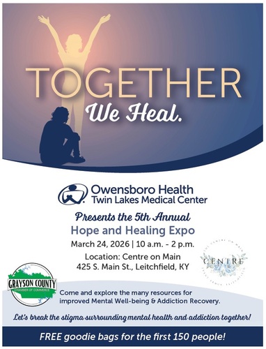 The Owensboro Health Twin Lakes Medical Center is hosting the 5th Annual Hope and Healing Expo on March 24, 2026, from 10 a.m. to 2 p.m. at Centre on Main. This community event brings together valuable resources focused on improving mental well-being and supporting addiction recovery. Attendees are invited to explore available services, connect with local organizations, and join in breaking the stigma surrounding mental health and addiction. The first 150 guests will receive free goodie bags
